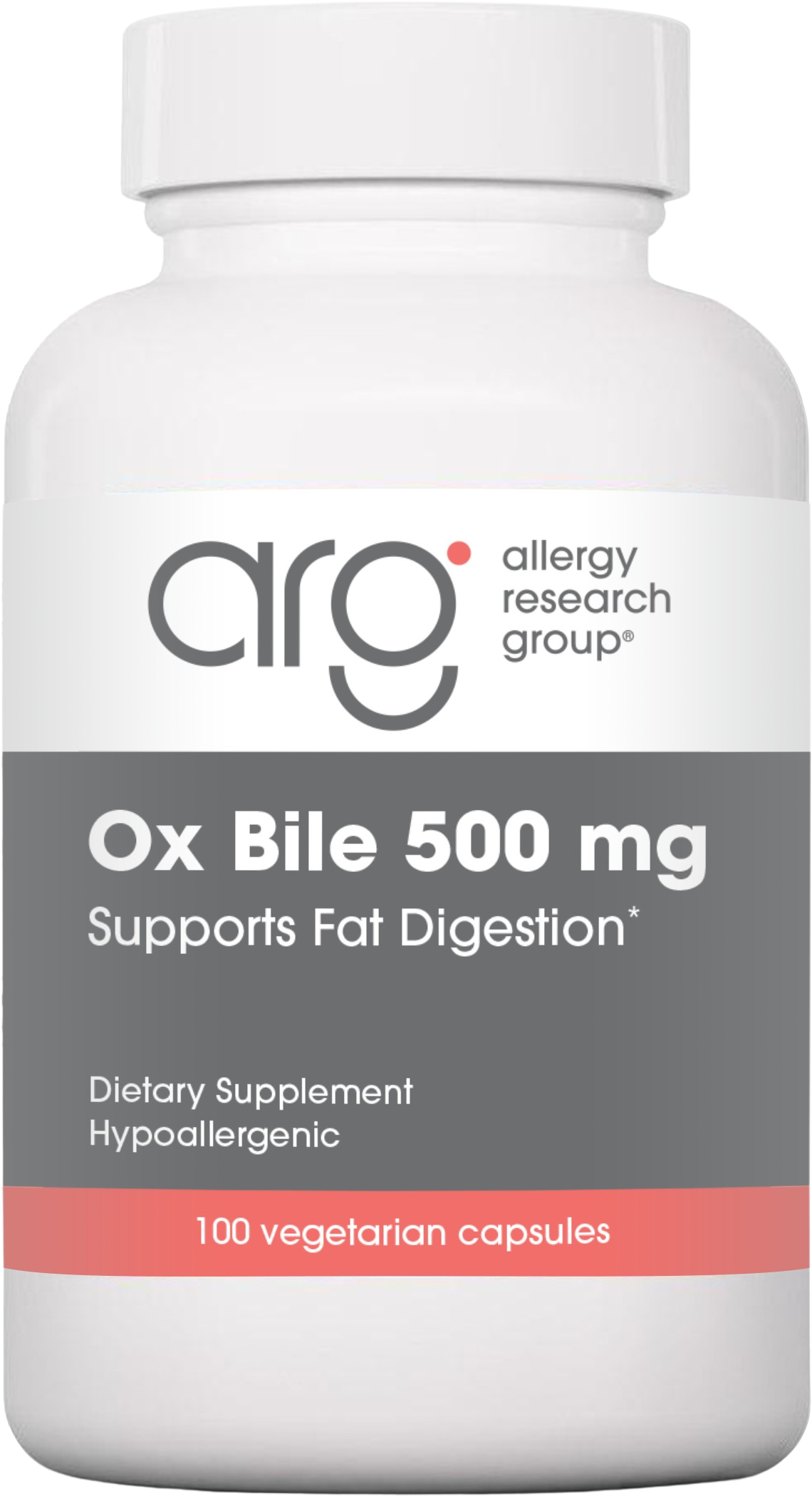 Ox Bile 500 mg od Allergy Research Group obsahuje hovädziu žlč, ktorá bola lyofilizovaná, aby sa zachovala jej biologická aktivita. Hovädzia žlč použitá pre Ox Bile je najvyššej kvality. Je prírodná, čistá a neobsahuje aditíva či všetky bežné alergény.