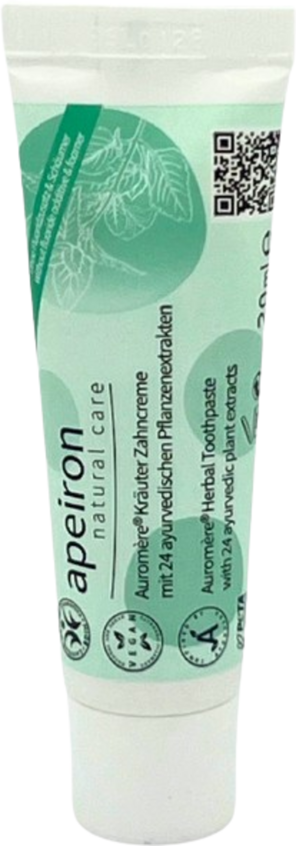 24 rastlín spojených v jednej zubnej paste - táto bylinná zubná pasta je prírodný produkt z prírody. Výťažky z neemového stromu, klinčekového oleja a sladkého drievka pôsobia proti baktériám, ktoré spôsobujú zubný povlak a kaz. Obsahuje aj čínske datle, žlté drevo, ružové jablko a baleriu. Jemné minerálne čistiace čiastočky jemne čistia zuby a šetrne odstraňujú škodlivý povlak. Tymián, mäta a cejlónska škorica zaisťujú veľmi príjemnú a jedinečnú chuť. Táto bylinná zubná pasta od Apeironu je veľmi jemná a môžu ju používať aj deti. Neobsahuje žiadne zbytočné penotvorné látky, dá sa použiť šetrne, a preto je veľmi ekonomická.