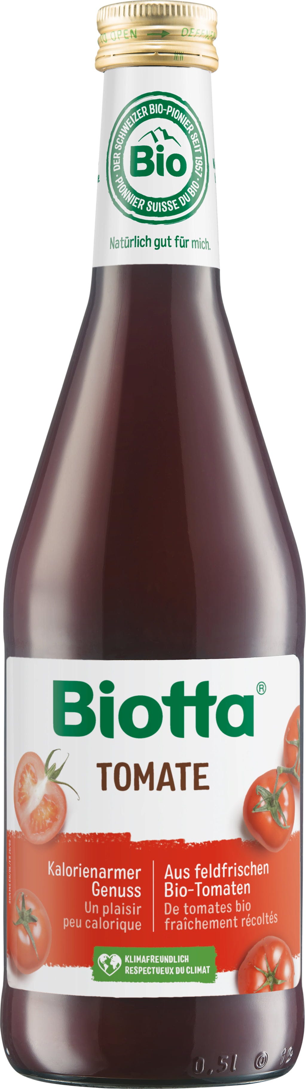 Paradajková šťava od Biotty je pôžitkom z čerstvo zozbieraných paradajok s čerstvou citrónovou šťavou a trochou morskej soli. Šťavu zohrejte a ozdobte s čerstvými bylinkami – budete nadšení! Šťava sa skladá zo 6 paradajok a je vhodná aj pre diabetikov.