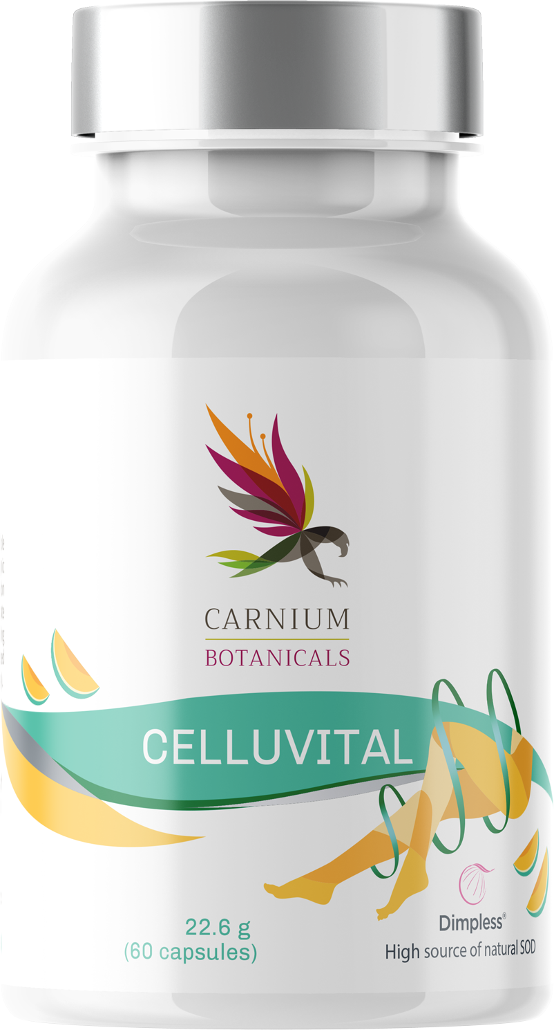 Kapsuly Celluvital od spoločnosti Carnium Botanicals obsahujú výťažky z červeného hrozna a melóna, zinok a meď. Zloženie je úplne vegánske a bez konzervačných látok.