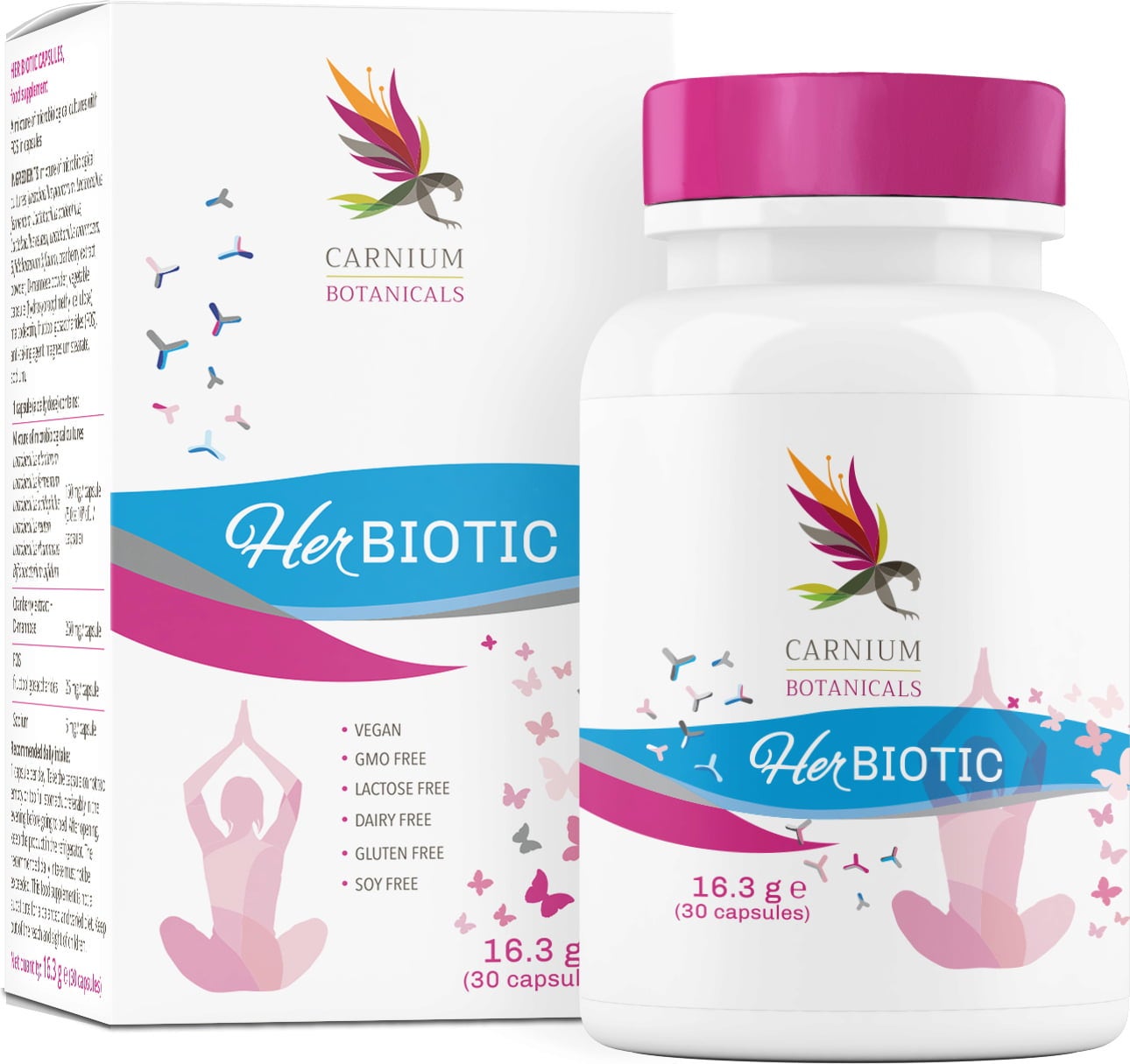 Her Biotic od spoločnosti Carnium Botanicals bol vyvinutý špeciálne pre ženy. Kapsuly obsahujú okrem iného 6 vybraných bakteriálnych kmeňov, extrakt z brusníc a D-manózu. Vďaka vegánskemu zloženiu poskytujú kapsuly optimálnu podporu na každý deň. Sú vhodné pre osoby od 14 rokov.