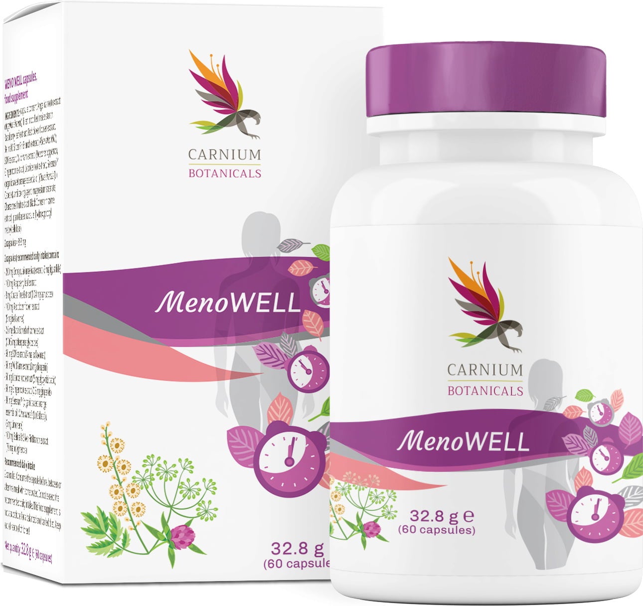 MenoWELL od spoločnosti Carnium Botanicals podporuje ženy najmä v období, keď ich telo prechádza hormonálnymi zmenami. Cenné zložky ako mníšske korenie, batát, malinové listy, ďatelina lúčna a dong quai (angelika čínska) poskytujú ženám tú najlepšiu možnú podporu. Kapsuly sú úplne prírodné, vegánske a bezlepkové.