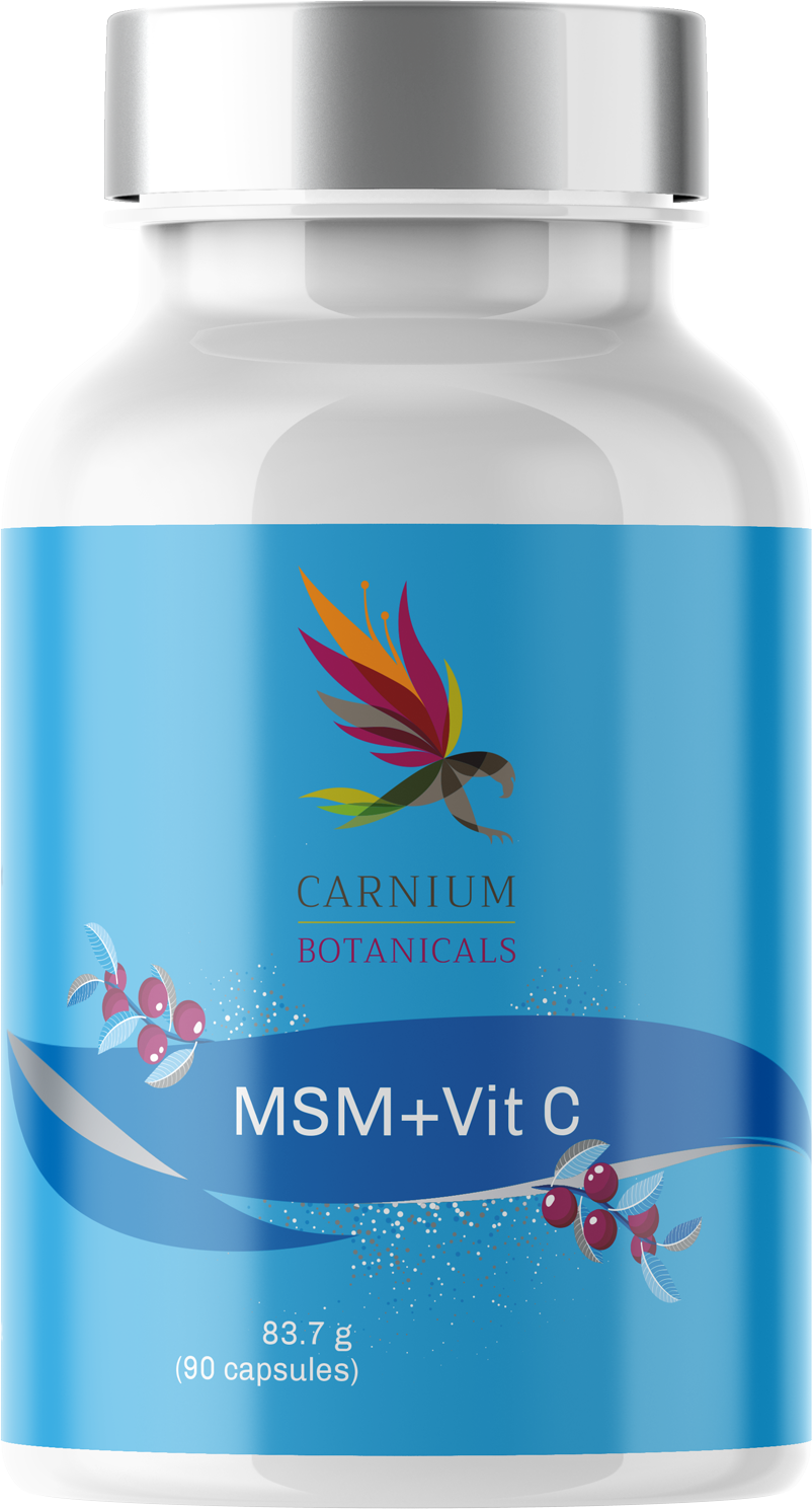 Tieto kapsuly od spoločnosti Carnium Botanicals obsahujú prírodný zdroj síry MSM (metylsulfonylmetán) a vitamín C z camu-camu. Zloženie je úplne prírodné, vegánske a bez lepku, laktózy a konzervačných látok.