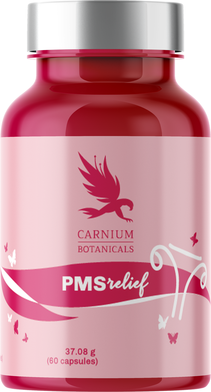PMS Relief od Carnium Botanicals podporuje ženy zložkami, ako sú horčík, zázvor, angelika čínska, mníšske korenie, medovka lekárska a vitamíny B6 a D3. Zloženie kapsúl je vegánske a neobsahuje lepok ani konzervačné látky.