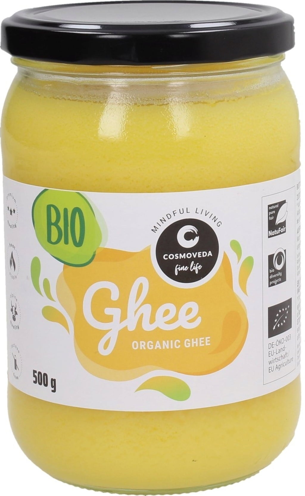 - Ghí je prírodný produkt. Pri izbovej teplote môže byť čiastočne tuhý a čiastočne kvapalný. Pri prechode z kvapalného do tuhého stavu môžu procesy kryštalizácie tuku viesť k zrnitým štruktúram, ktoré sú pre produkt charakteristické a nepredstavujú žiadne zhoršenie kvality.