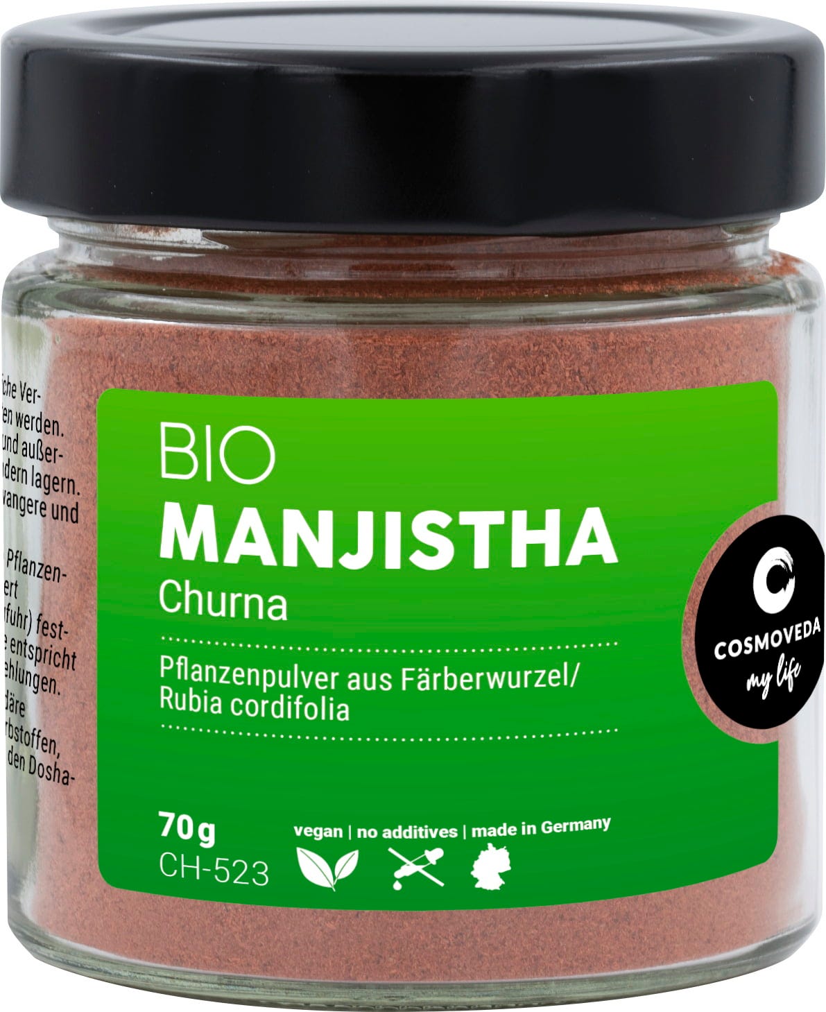 Manjistha - Rubia cordifolia - je vždyzelená rastlina, ktorá dorastá do výšky 1,5 m a má 5-10 cm dlhé listy, žltkasté kvety a korene dlhé až 1,5 m, ktoré sa používajú v ajurvédskej strave.