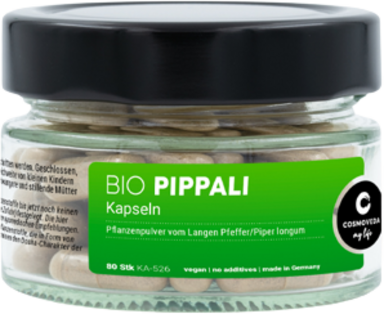 Pippali - Piper longum - dlhé korenie je štíhla, aromatická popínavá rastlina s trvácnymi drevnatými koreňmi, protistojnými listami a plodmi dlhými 2,5-3,5 cm, hrubými 5 mm, čierno-zelenkavej farby. V ajurvédskej strave sa používajú nezrelé a zrelé plody a koreň.