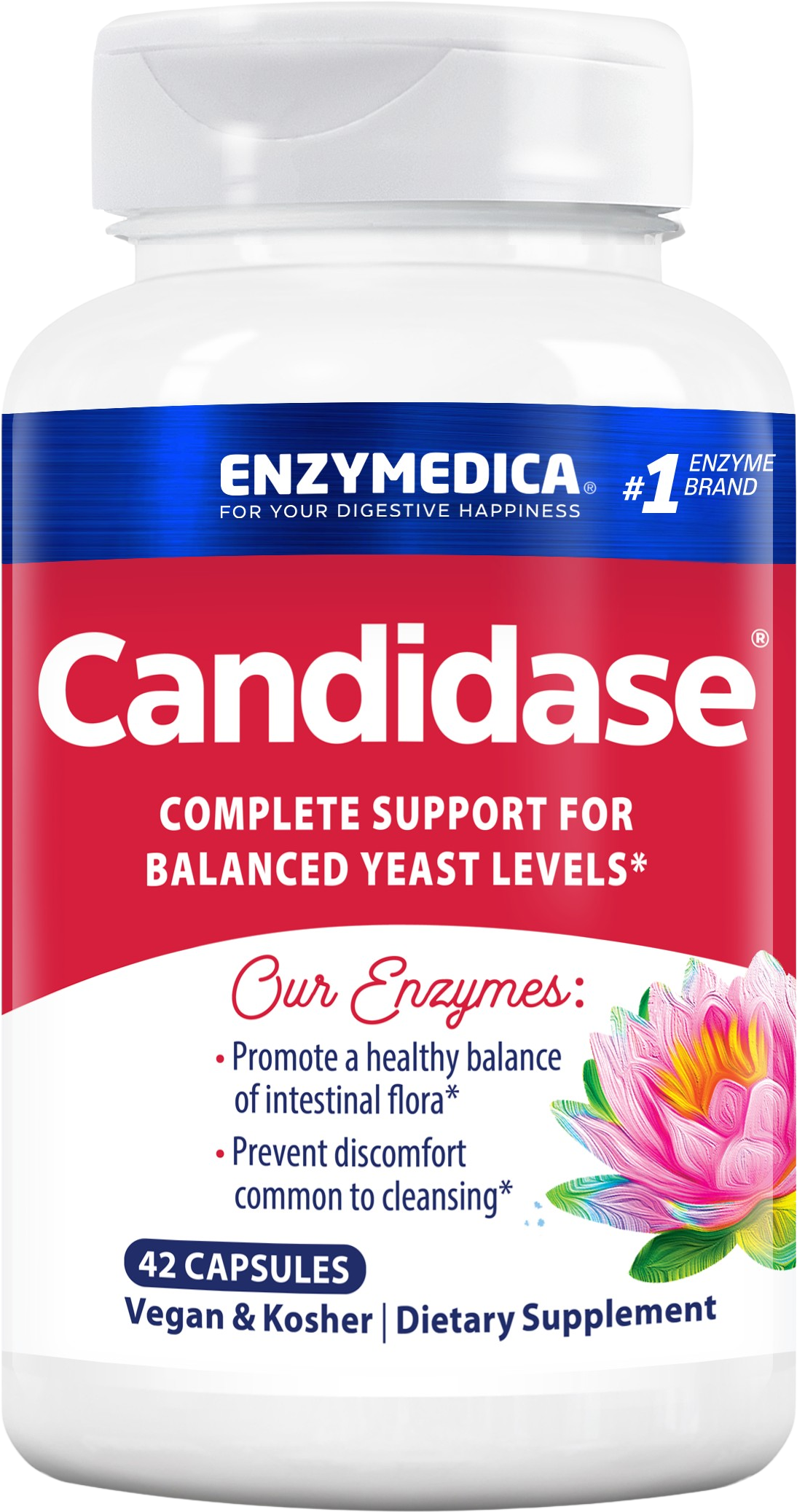 Candidase značky Enzymedica obsahuje enzýmovú zmes pozostávajúcu z celulázy a proteázy. Kapsuly na rastlinnej báze sú 100 % vegánske a bezlepkové.
