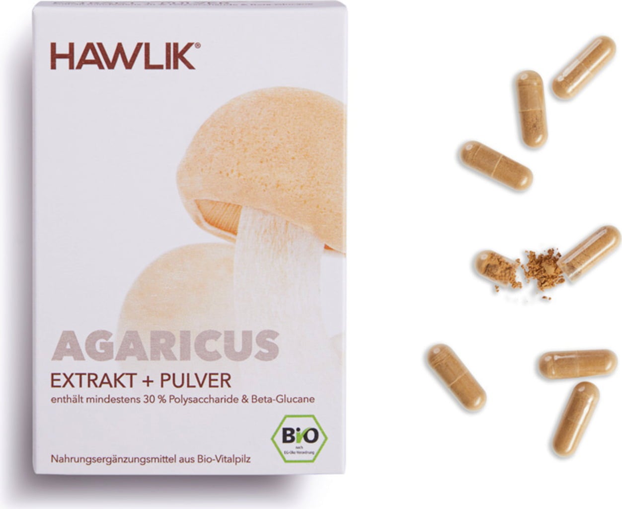 Hawlik Bio extrakt + prášok z huby Agaricus v kapsulách, 60 kapsúl