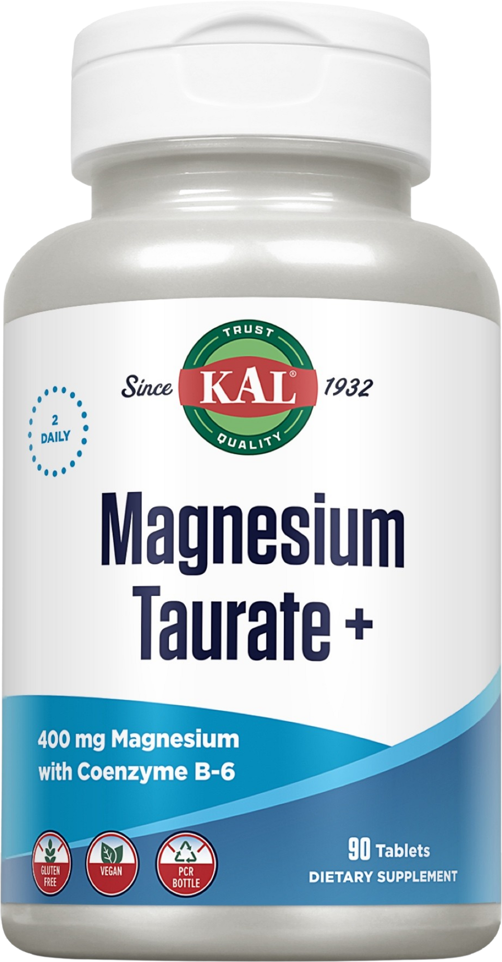 Magnesium Taurat+ od spoločnosti KAL je vysokokvalitný doplnok stravy s 200 mg elementárneho horčíka na tabletu. Kombinácia horčíka a aminokyseliny L-taurín vás podporí pri vyváženom príjme horčíka v každodennom živote. Tablety sú vegánske a bez zbytočných prídavných látok.