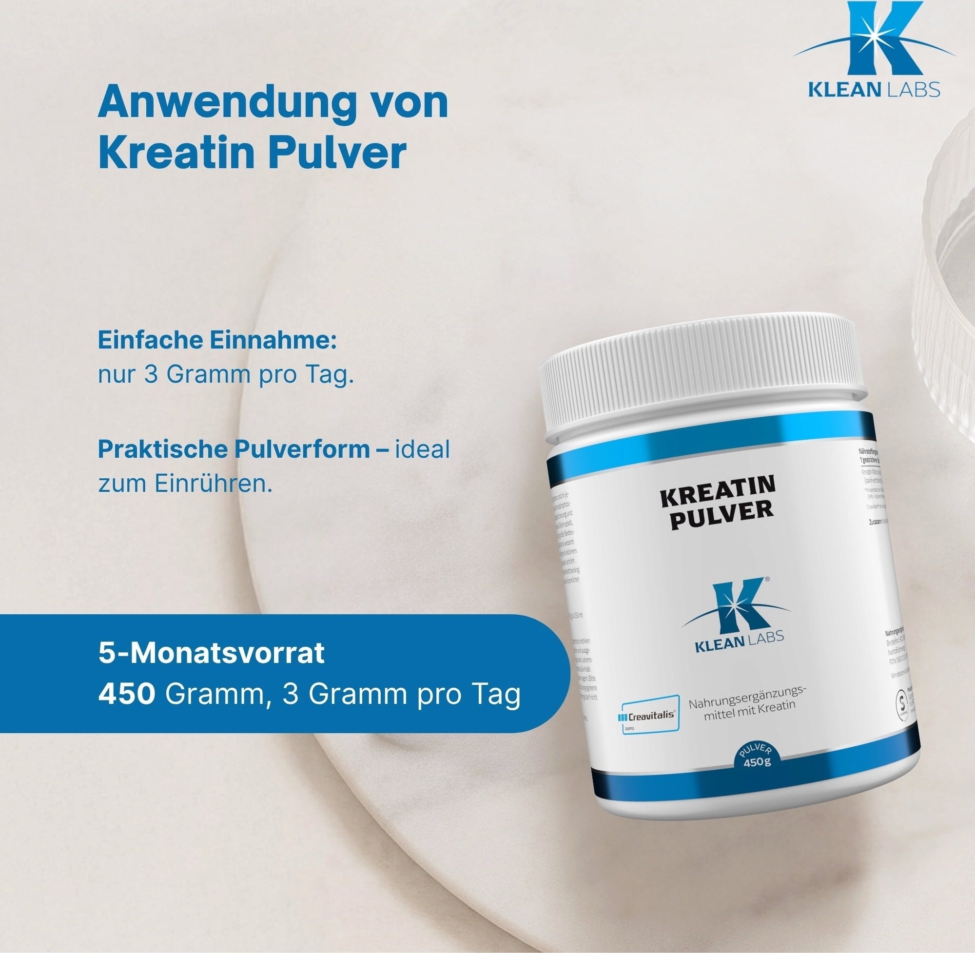 KLEAN LABS Kreatín Creavitalis® prášok, 450 g € 53,99 (€ 119,98 / kg)