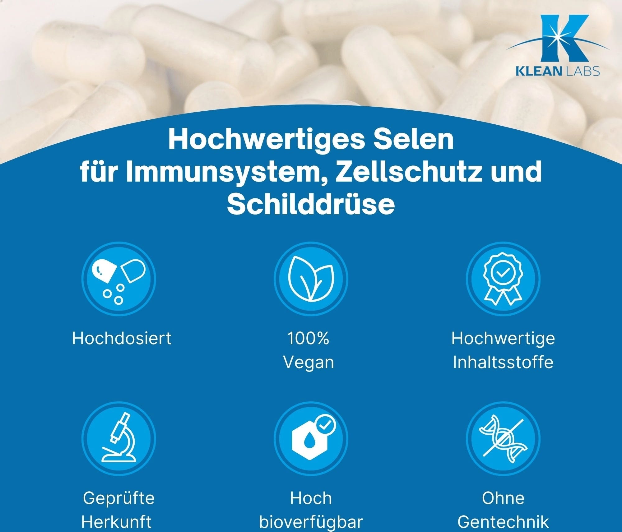Stopový prvok selén sa musí prijímať s potravou. Bezlepkové kapsuly selénu od spoločnosti KLEAN LABS obsahujú 200 mcg selénu v jednej kapsule. Zloženie je vegánske a bez GMO.