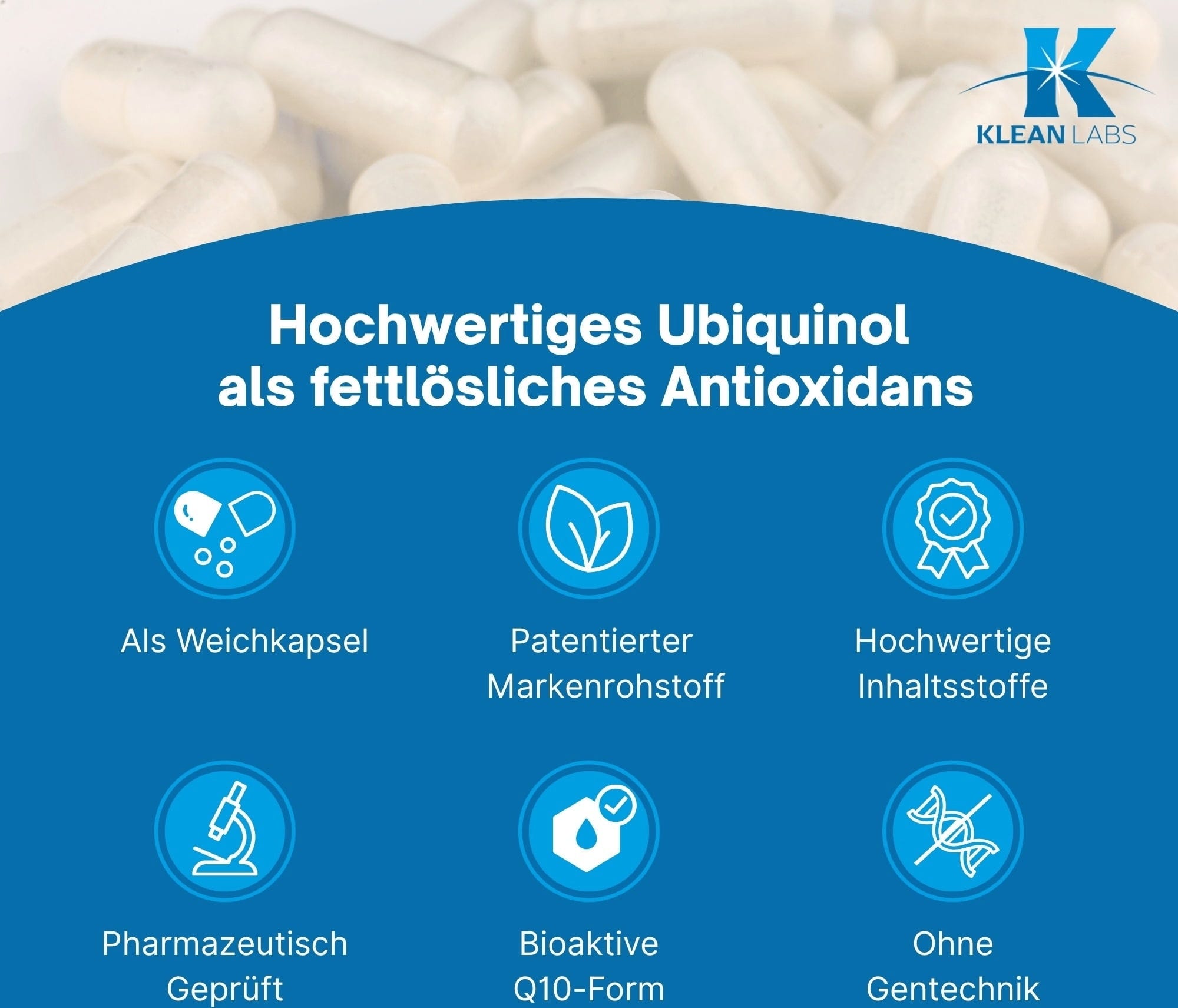 Ubichinol je aktívna, redukovaná forma Q10. Mäkké kapsuly od Klean Labs sa ľahko prehĺtajú a môžu sa užívať denne.