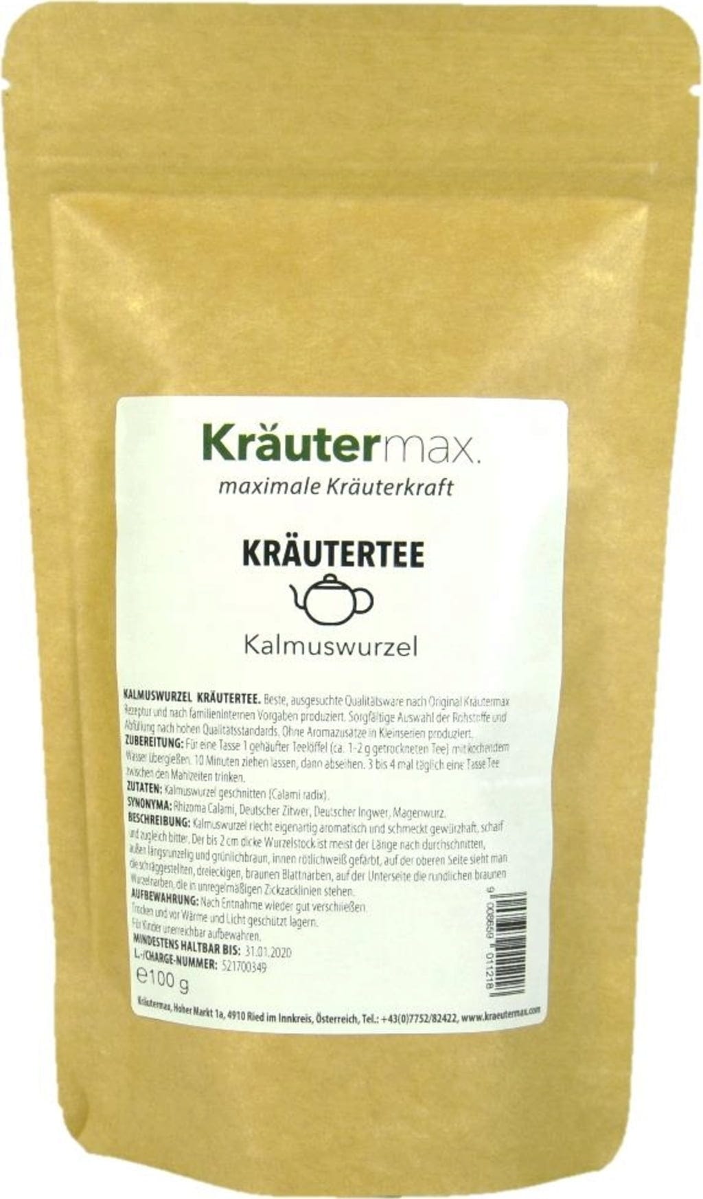 Čaj má osobitú vôňu a chutí silne korenisto a horkasto. Bylinný čaj z koreňa kalamusu sa vyrába podľa vysokých štandardov kvality podľa originálnej receptúry Kräutermax.