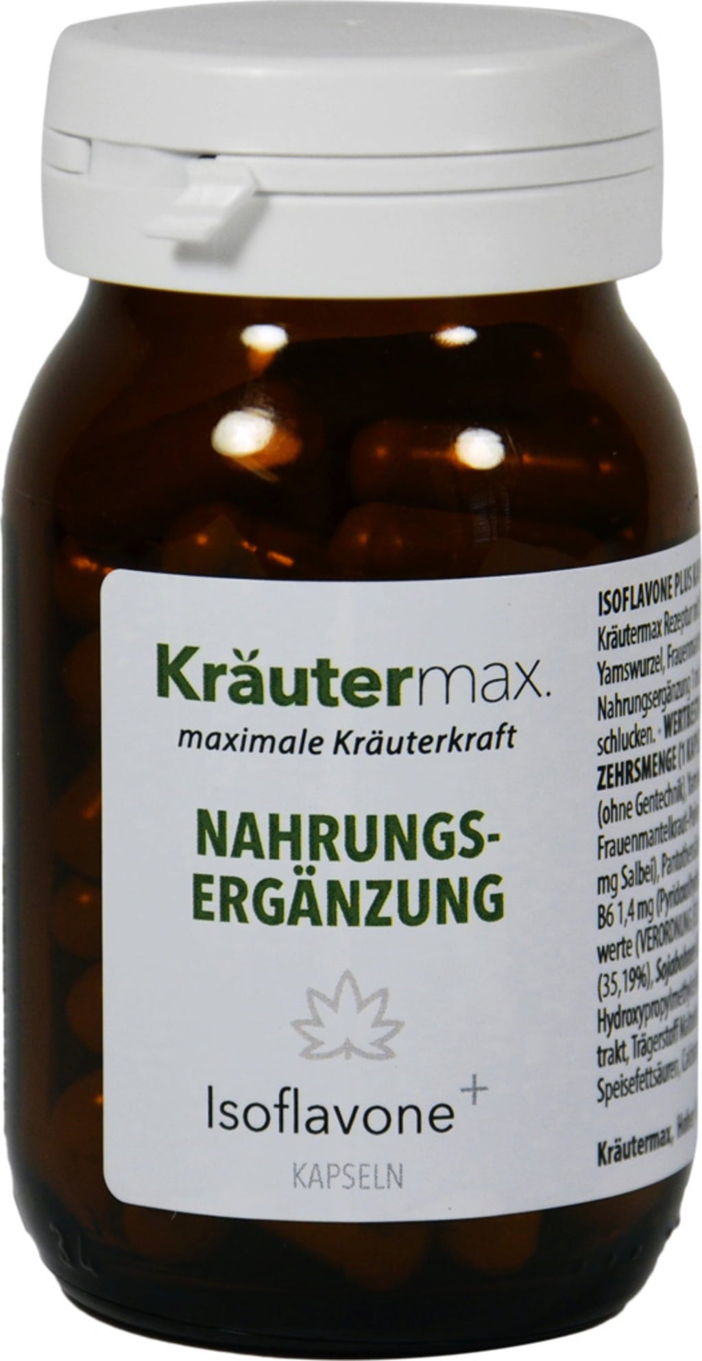 Výživový doplnok na základe originálnej receptúry Kräutermax so sójovými izoflavónmi, vitamínmi (B6, kyselina pantoténová), koreňom yam, alchemilkou a šalviou.
