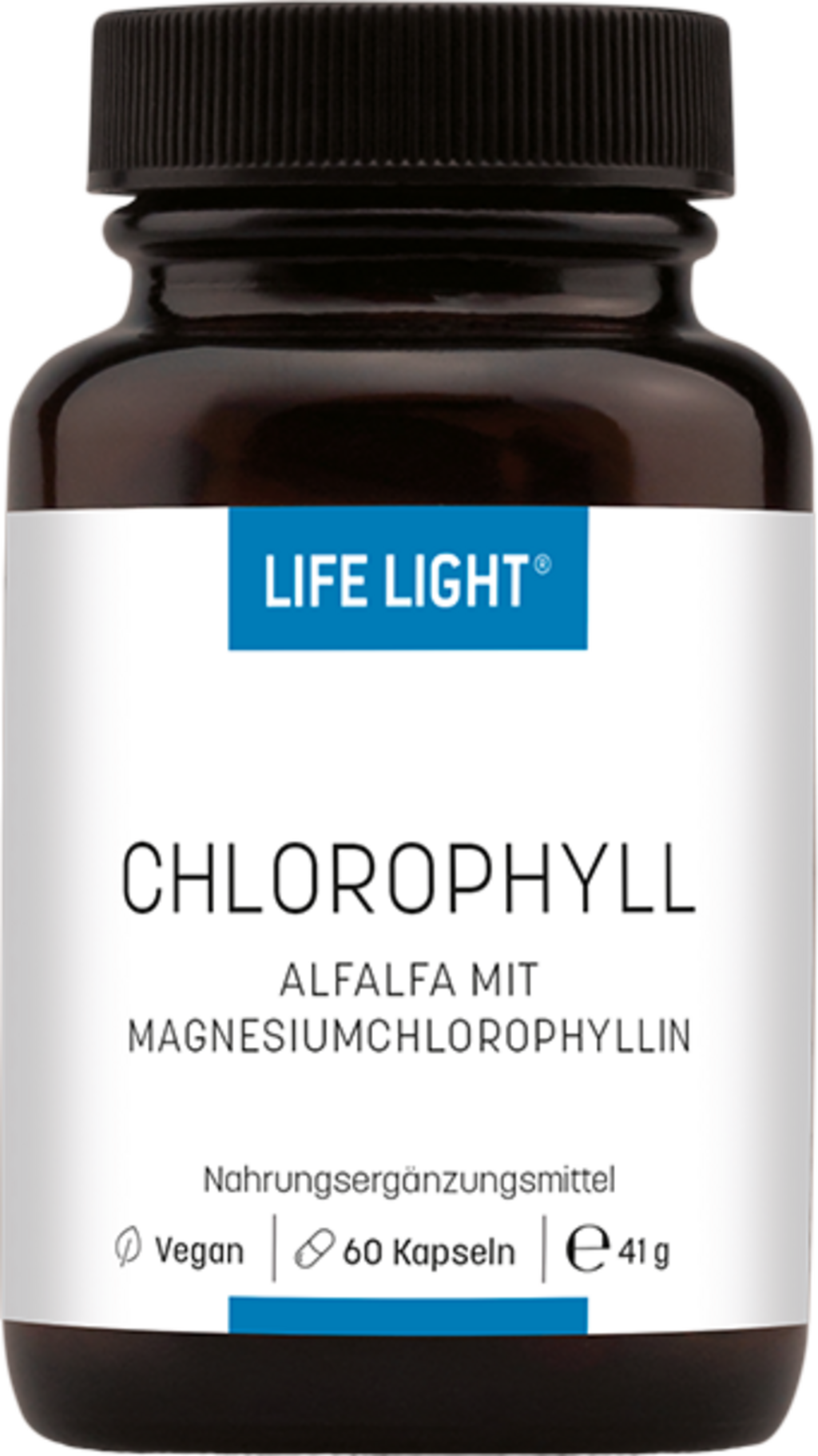 Life Light® Chlorophyll obsahuje chlorofyl z lucerny v kombinácii s horčíkom chlorofylínom. Chlorofyl je prírodné farbivo, ktoré dáva rastlinám zelenú farbu. Lucerna je rastlina bohatá na chlorofyl a už dlho je cenená ako zdroj zelenej farby.