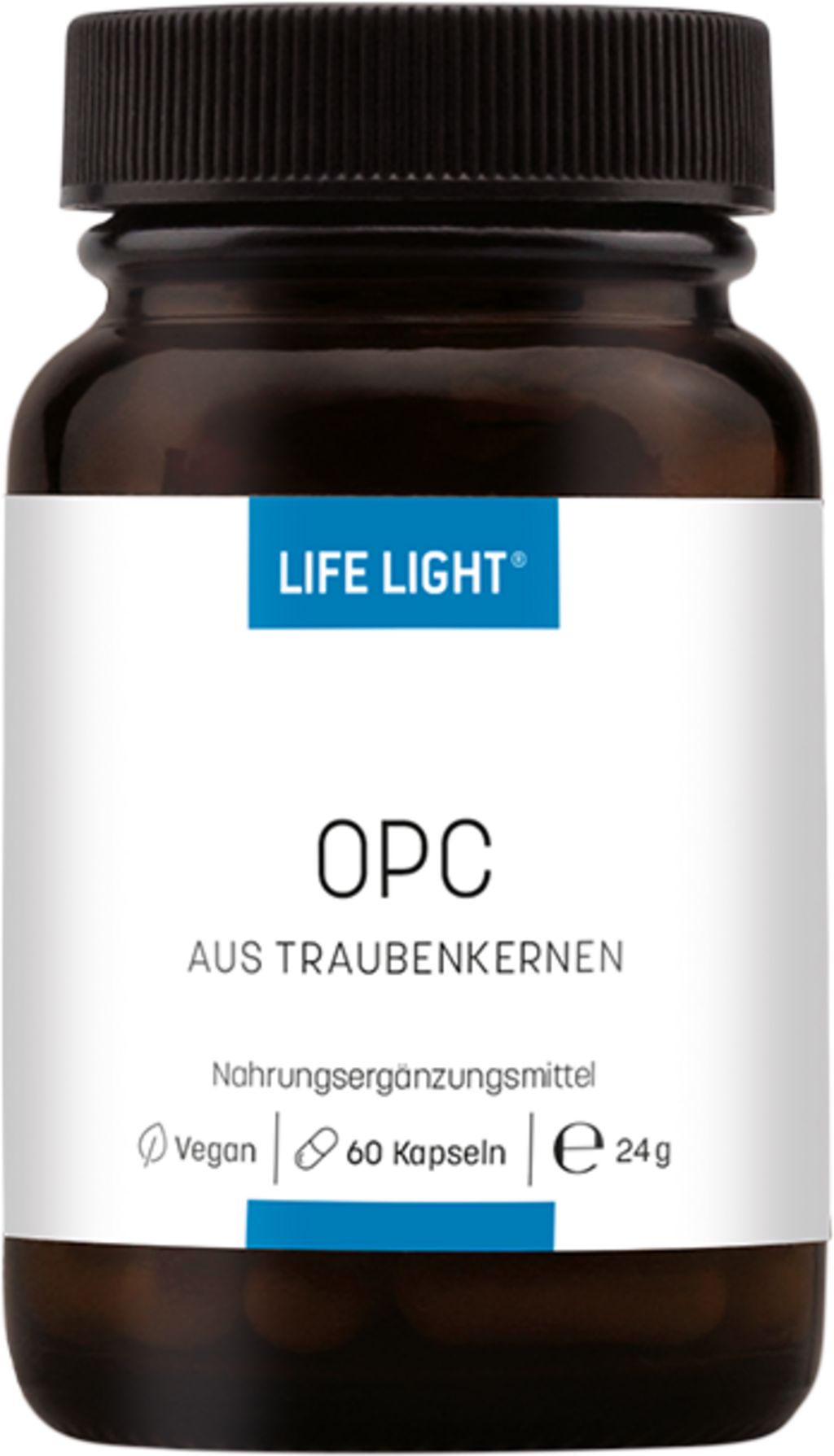 Life Light® OPC obsahuje vysokokvalitné oligomerné proantokyanidíny (OPC) z extraktu z hroznových jadierok a polyfenoly z hrozna. Šetrný proces extrakcie zabezpečuje, že cenné zložky sú z veľkej časti zachované.