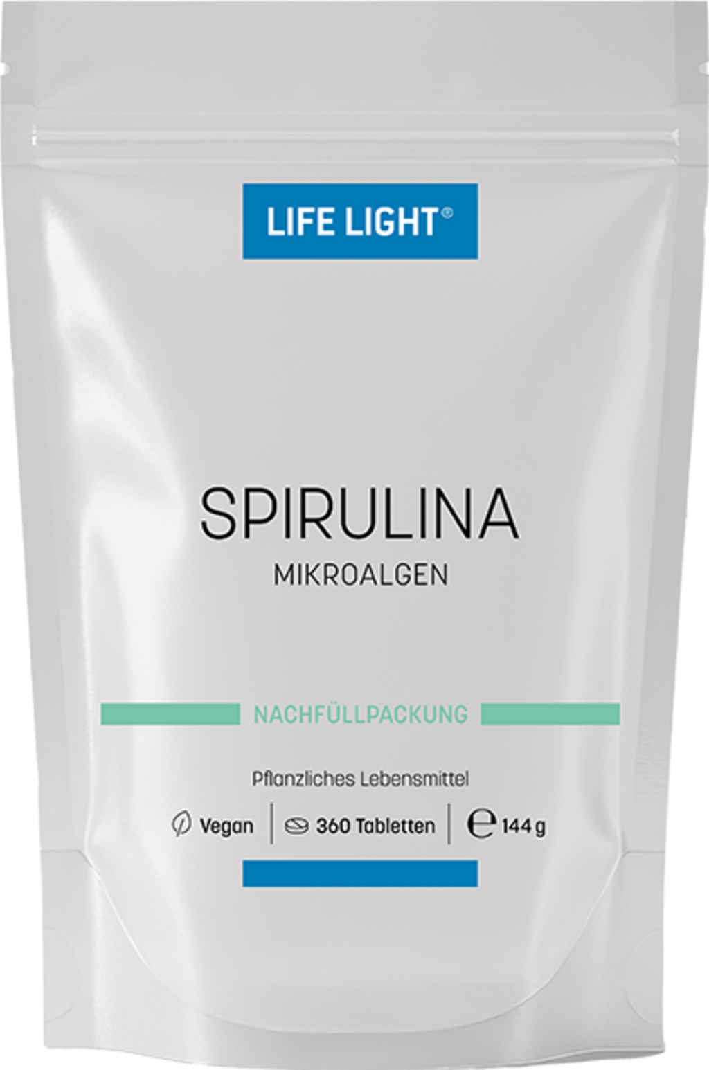 Tablety Spirulina od Life Light® obsahujú vysokokvalitné sladkovodné mikroriasy (Spirulina platensis). Sú bohaté na prírodný chlorofyl a sú vhodné na použitie vo vegetariánskej a vegánskej strave.