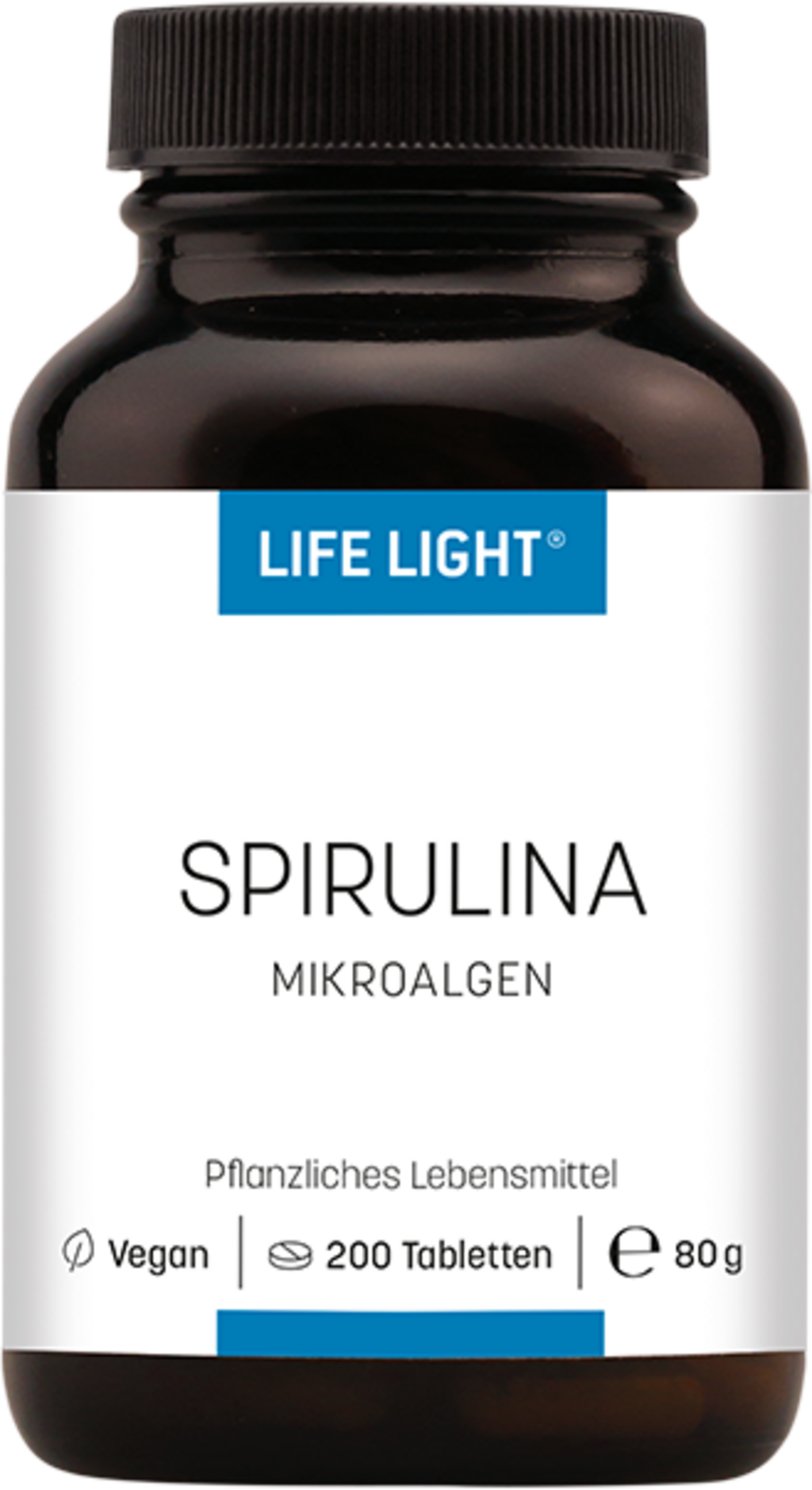 Tablety Spirulina od Life Light® obsahujú vysokokvalitné sladkovodné mikroriasy (Spirulina platensis). Sú bohaté na prírodný chlorofyl a sú vhodné na použitie vo vegetariánskej a vegánskej strave.