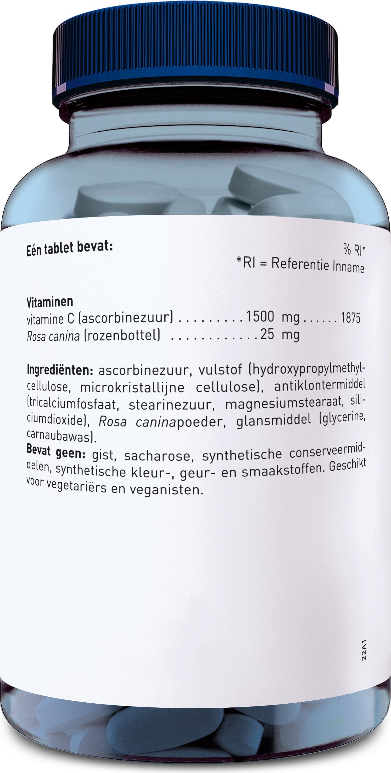L-askorbová kyselina, Plnivo (Hydroxypropylmetylcelulóza, Mikrokryštalická celulóza), Protihrudkujúca látka (Calcium phosphate, Tricalcium phosphate), Extrakt zo šípky, Protihrudkujúca látka (Mastné kyseliny, Horčíkové soli mastných kyselín, Oxid kremičitý), Zasklievacie činidlo (Glycerín), Zasklievacie činidlo (Karnaubský vosk)