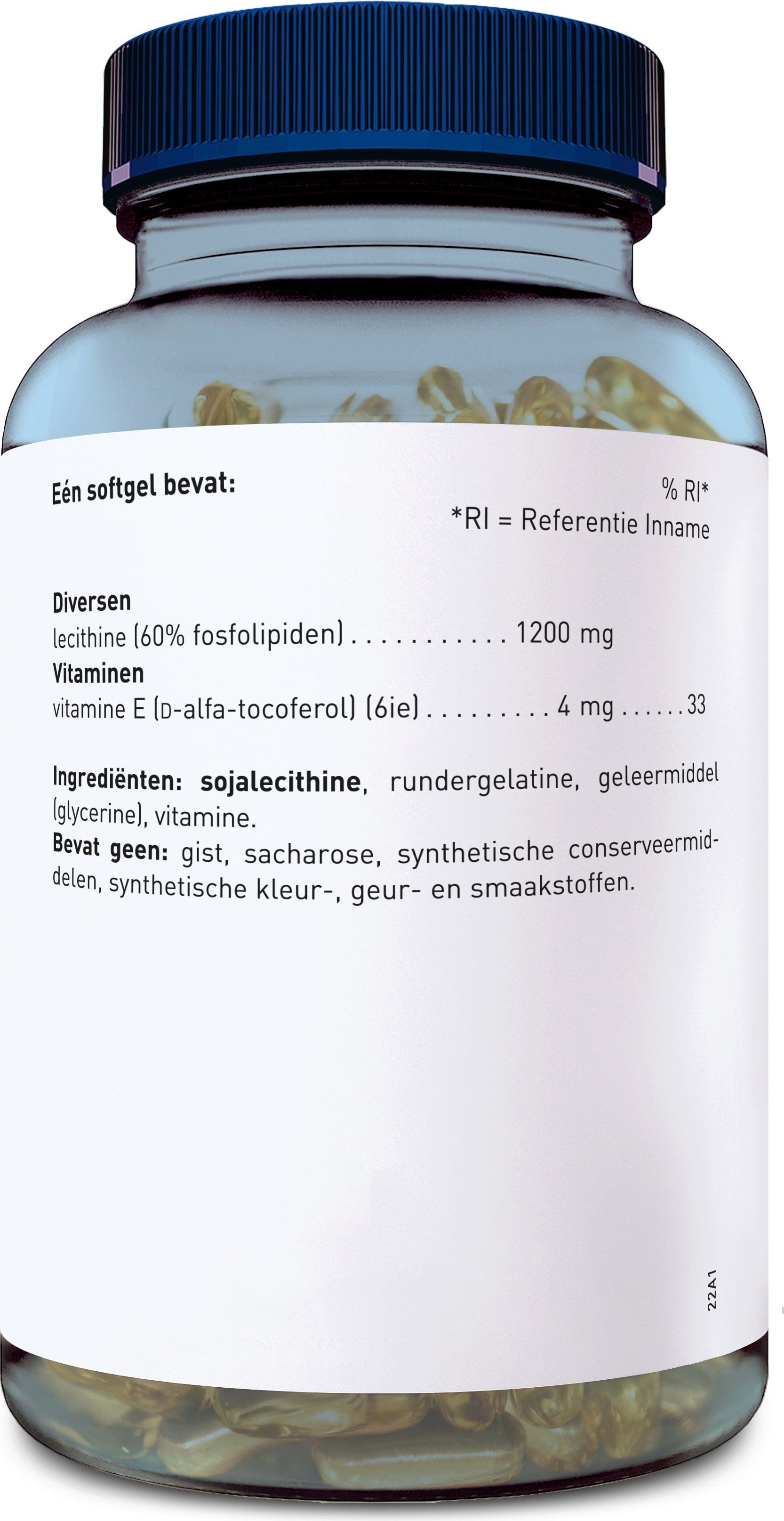 Tento produkt ponúka koncentrované množstvo sójového lecitínu vo forme mäkkých kapsúl. Každá kapsula obsahuje 1200 mg lecitínu, ktorý sa skladá z vysokého podielu fosfolipidov, ako je fosfatidylcholín. Fosfolipidy sú prirodzenou súčasťou bunkových membrán a s týmto prípravkom sú cielene začlenené do každodennej stravy.