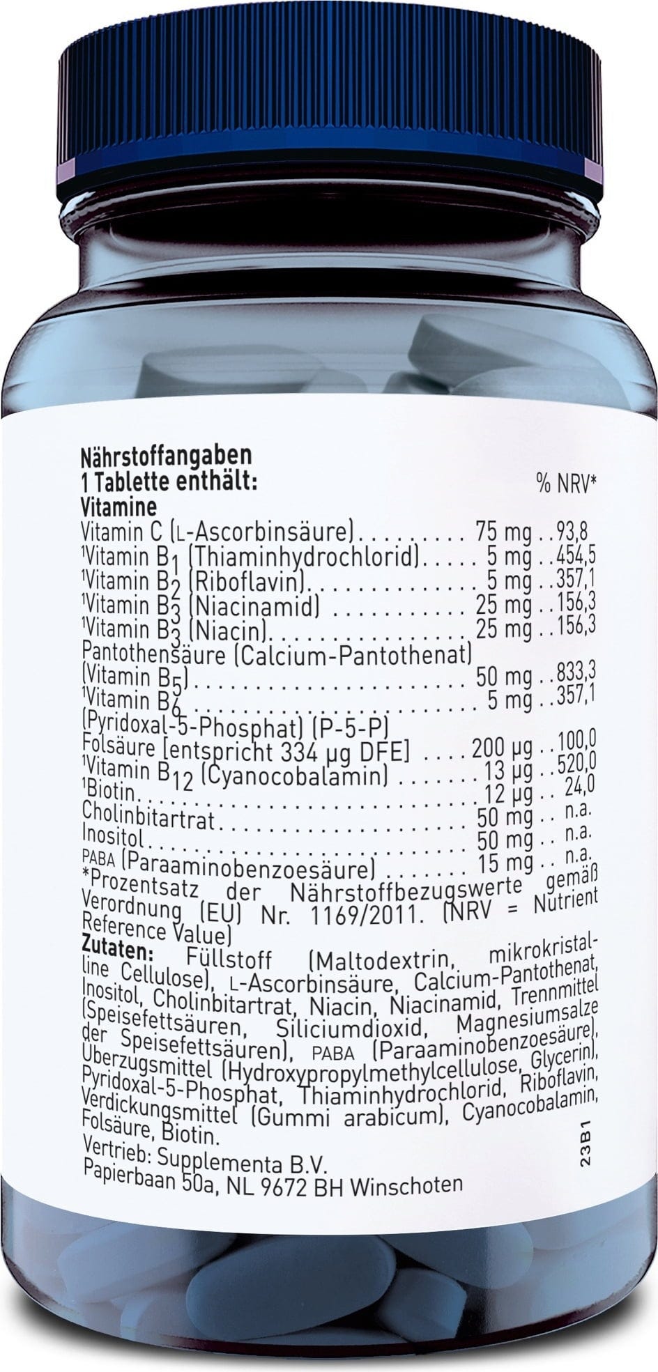 Tento B-komplex kombinuje B1, B2, B3, B5, B6, biotín, kyselinu listovú a B12 s vitamínom C, cholínom, inozitolom a PABA. Vitamín C podporuje normálny energetický metabolizmus a prispieva k zníženiu vyčerpania a únavy. Vitamíny skupiny B B6, B12 a kyselina listová tiež prispievajú k zníženiu vyčerpania a únavy, k normálnej činnosti nervového systému a k tvorbe červených krviniek. B-vitamíny skupiny tiež podporujú normálne fungovanie imunitného systému.
