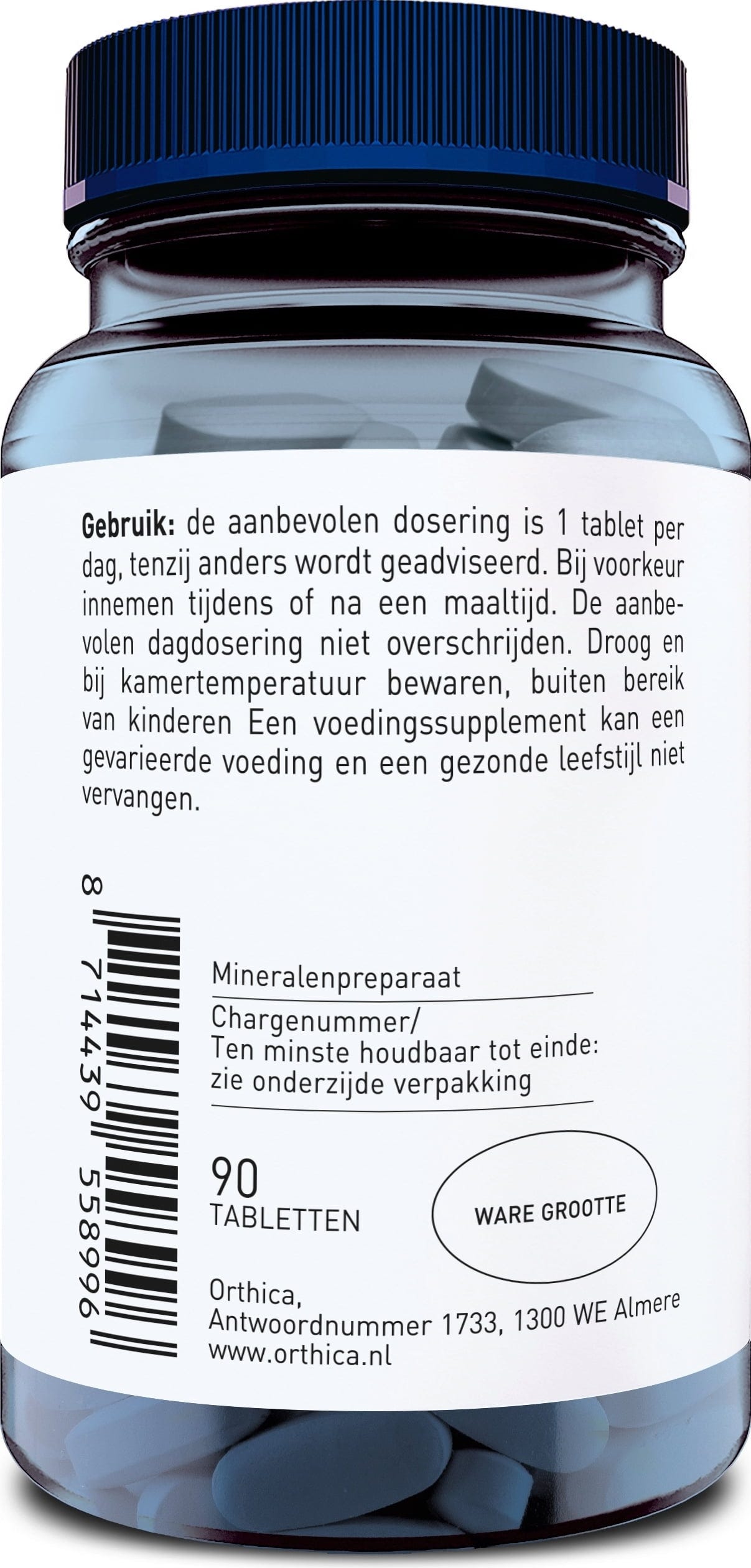 Plnivo (Calcium phosphate, Mikrokryštalická celulóza, Sodná soľ karboxymetylcelulózy), Zinc bisglycinate, Protihrudkujúca látka (Horčíkové soli mastných kyselín, Mastné kyseliny, Oxid kremičitý, Mastenec), Meďný glukonát, Zasklievacie činidlo (Hydroxypropylmetylcelulóza, Glycerín, Karnaubský vosk)
