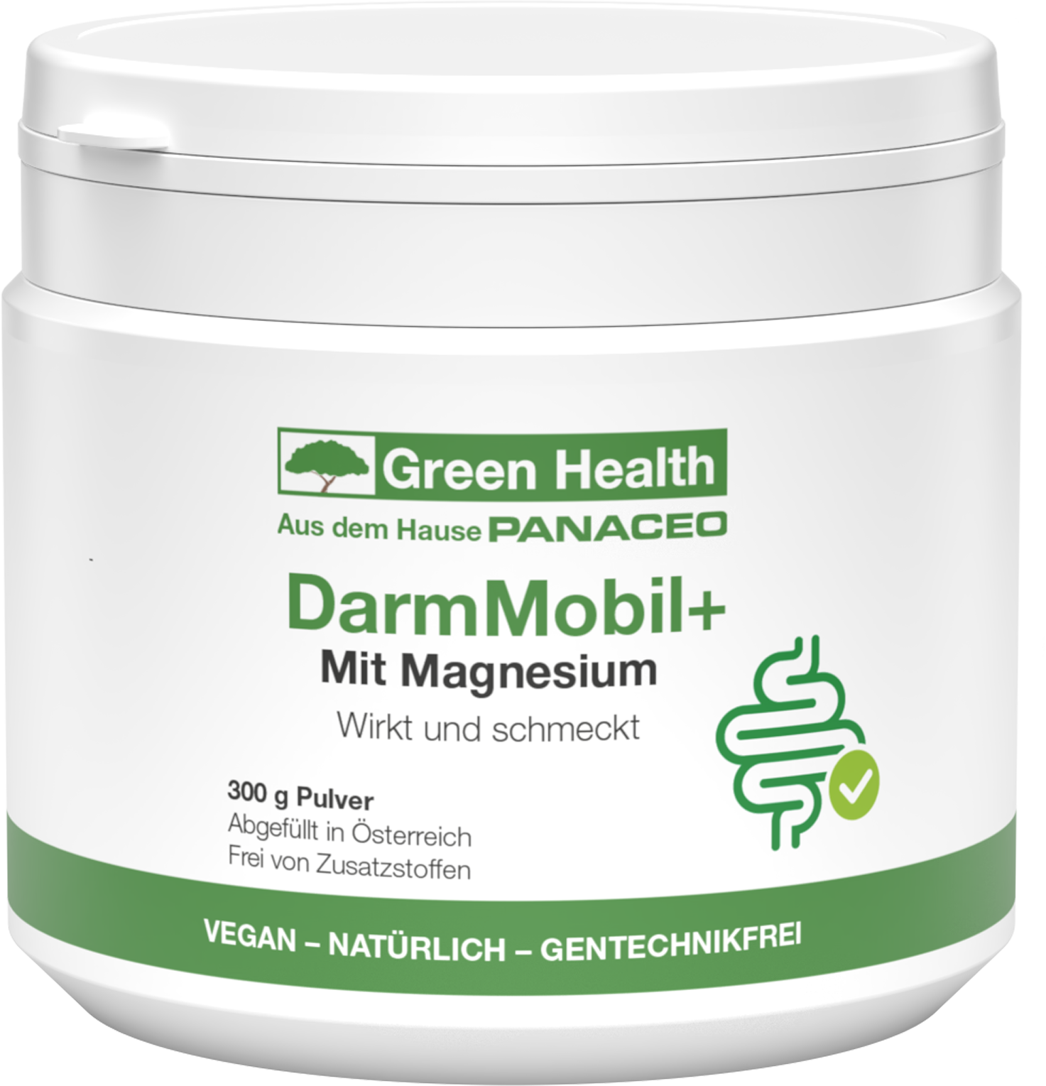 S práškom Green Health DarmMobil+ od spoločnosti Panaceo môžete rozhýbať svoje črevá. Postarajú sa o to na vlákninu bohatý prášok zo šupiek psyllia, trimagnézium citrát a vitamín C z prírodného extraktu aceroly. Hydrogenuhličitan sodný a kyselina citrónová dodávajú osviežujúcu chuť.