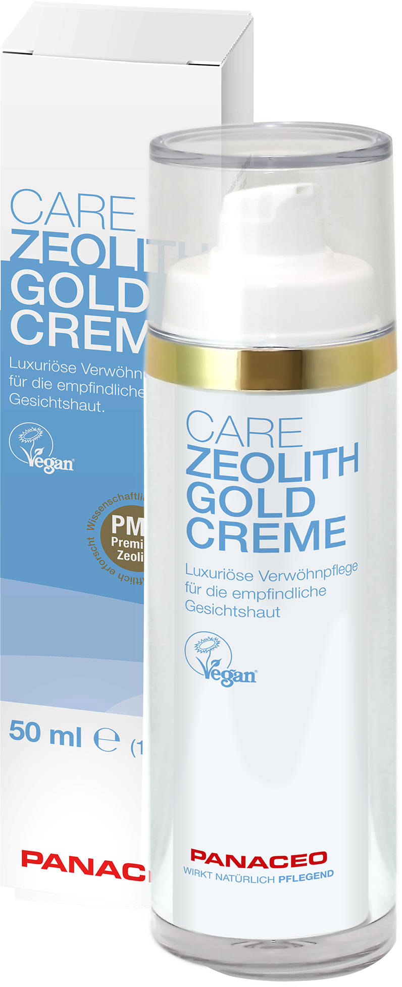 Krém Zeolith-Gold CARE od spoločnosti Panaceo rozmaznáva pokožku tváre, krku a dekoltu vybranými prvotriednymi zložkami. Ošetrujúci krém poskytuje dostatok hydratácie, vytvára pružnú a hladkú pleť a dodáva pokožke jemný zlatistý lesk.