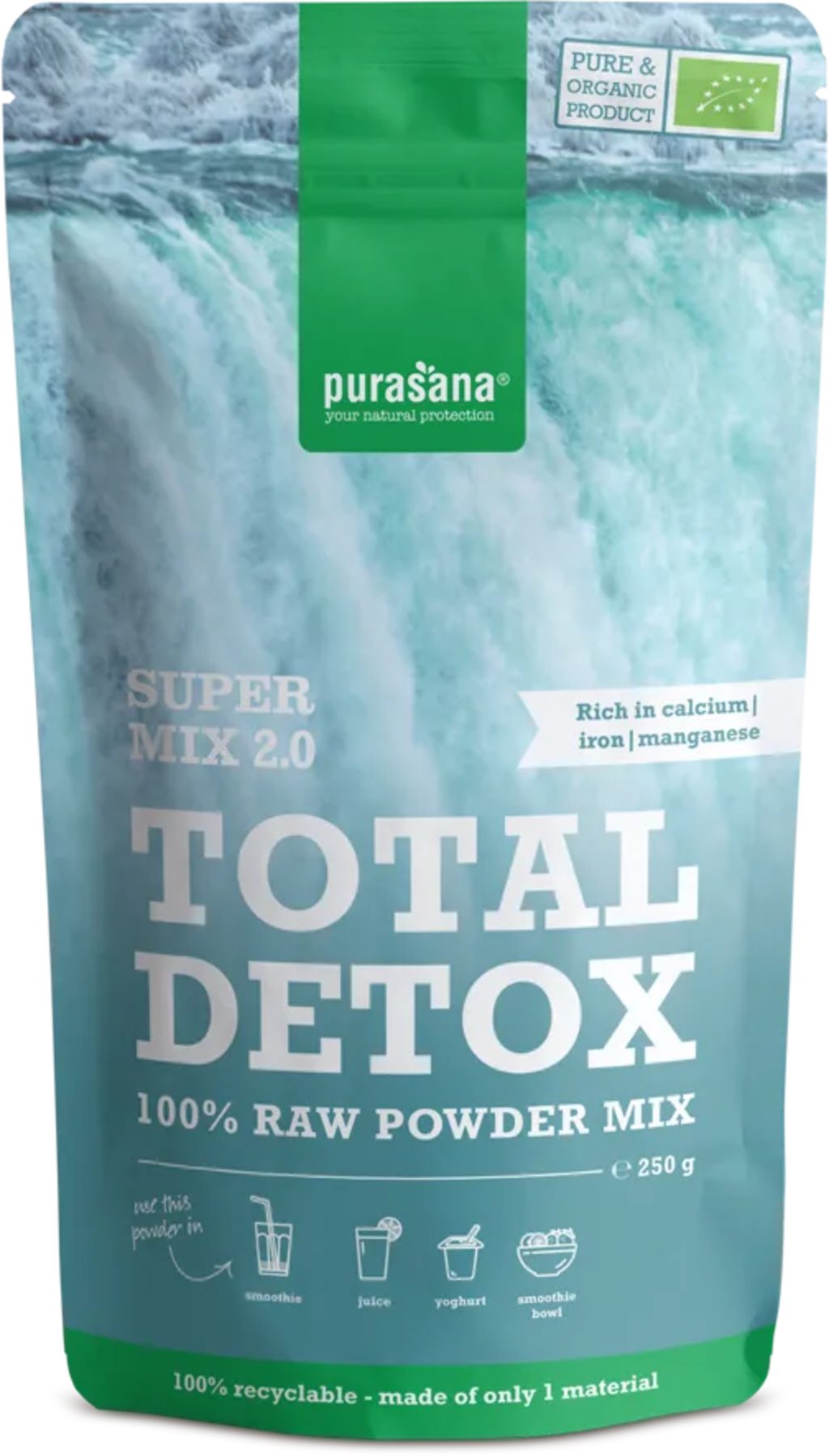 - Pridajte 3 čajové lyžičky prášku Detox mix 2.0.