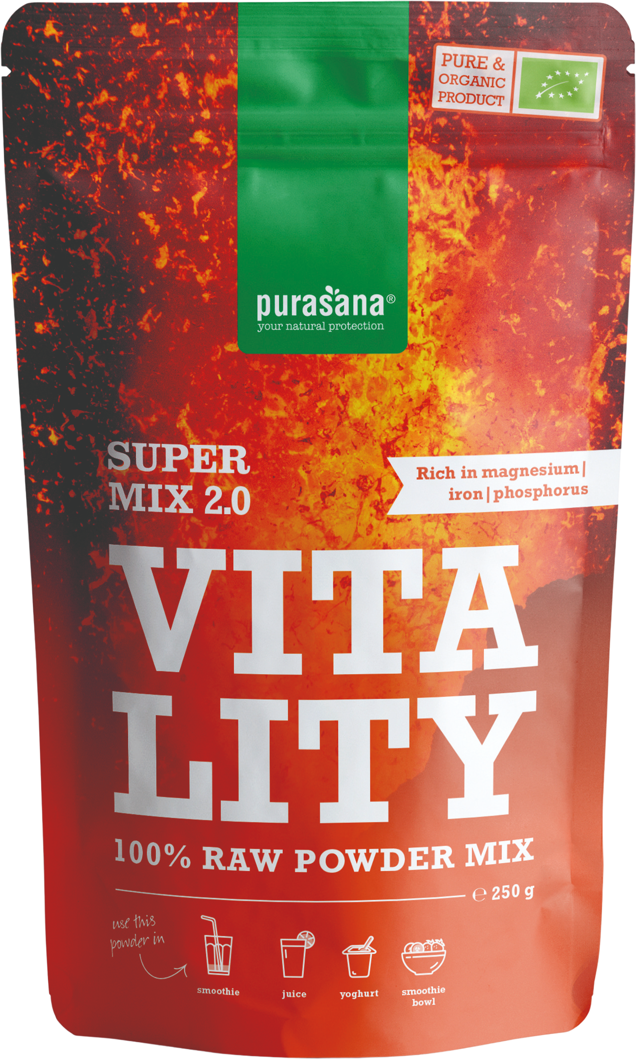 - Pridajte 3 čajové lyžičky Vitality mix 2.0.