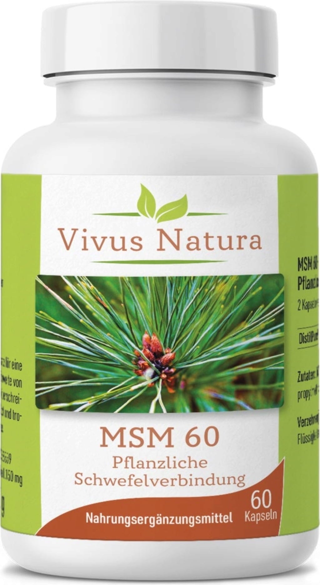 MSM (metylsulfonylmetán), známy aj ako zlúčenina síry, sa nachádza v ľudskom organizme, najmä v koži, vlasoch, nechtoch a pohybovom aparáte. Vivus Natura ponúka MSM 60 - monopreparát s obsahom čisto rastlinného DistilPureTM MSM, ktorý je zapuzdrený s celulózou HPMC, a preto je vhodný pre vegánov a vegetariánov.